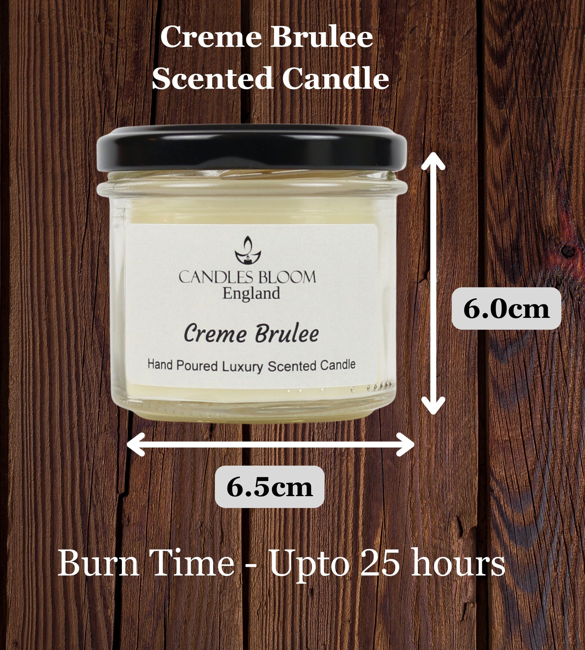 - 130ml Glass Jar and burn time up to 25 hours.